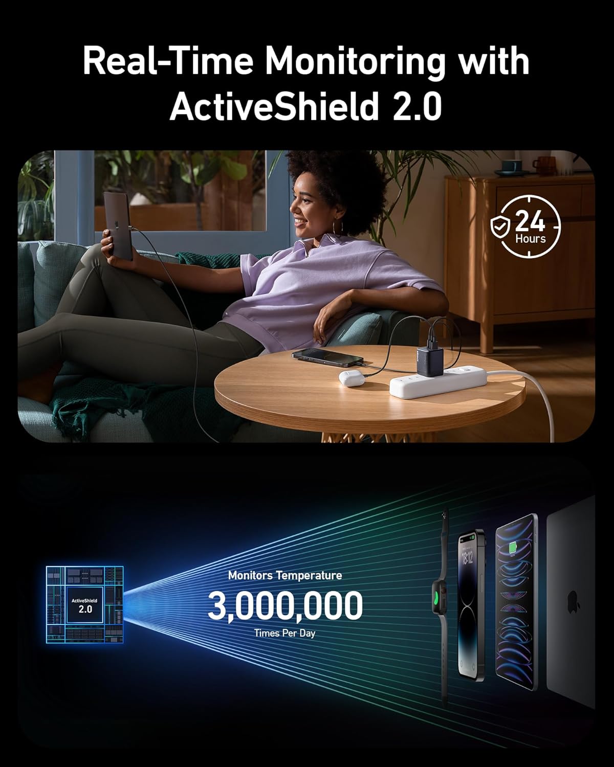 Anker Prime 67W USB C Charger delivers fast, efficient charging for your entire device ecosystem. This compact GaN wall charger features three ports—two USB-C and one USB-A—enabling simultaneous charging of laptops, tablets, and phones. With 67W total power output and PPS technology, it intelligently distributes power to maximize charging speeds. Compatible with MacBook Pro/Air, iPad Pro, iPhone 17/16/Pro, Galaxy S23/S22, Pixel, and more. Its space-saving design makes it ideal for travel or home use without cluttering your outlet.