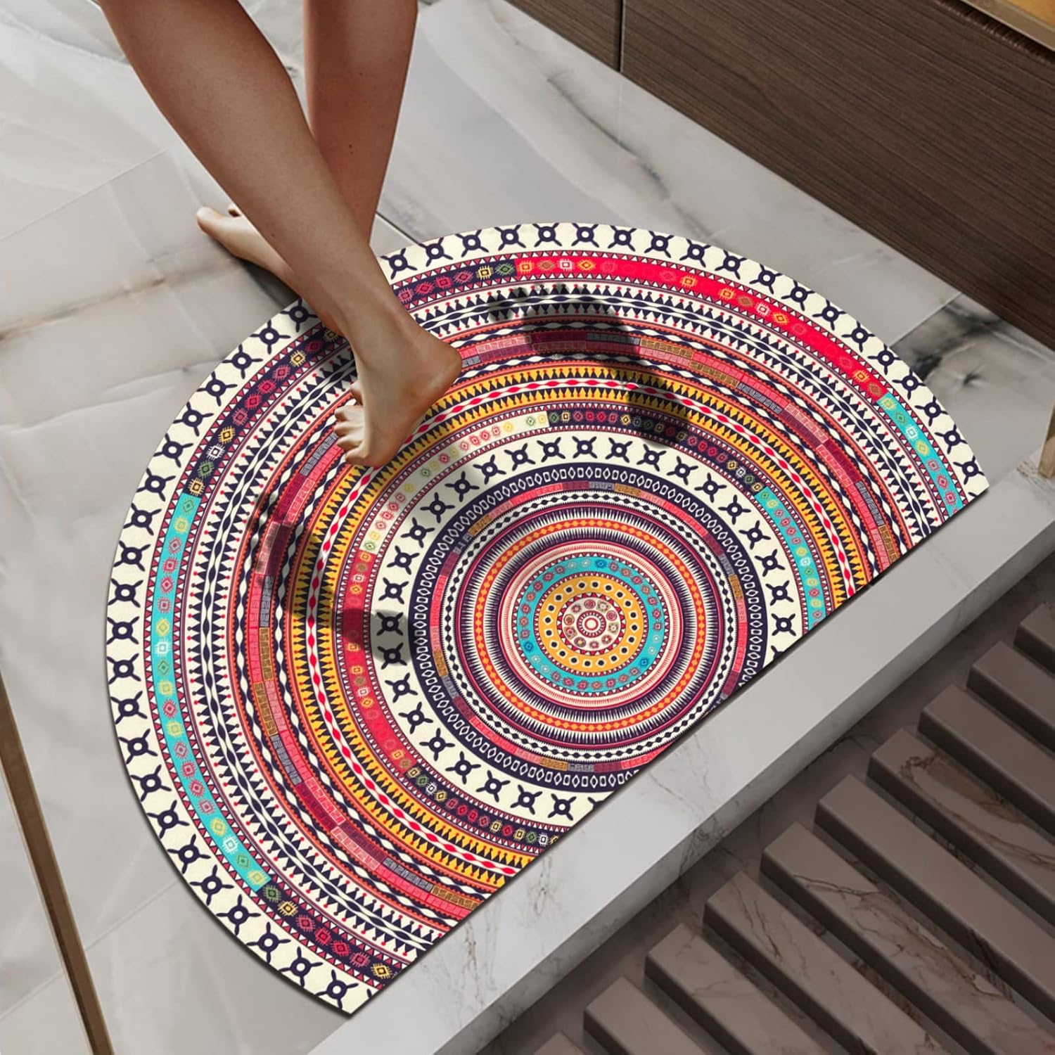 Experience luxurious comfort with the KALLIEGEAR 2 Pcs Boho Diatomaceous Earth Bath Mats. Made with quick-drying material, these non-slip mats provide safety and convenience. The stylish design and large size (30"x20") add a touch of elegance to any bathroom. Upgrade your bath time experience today!