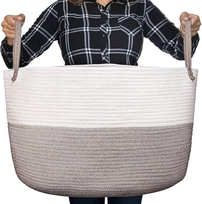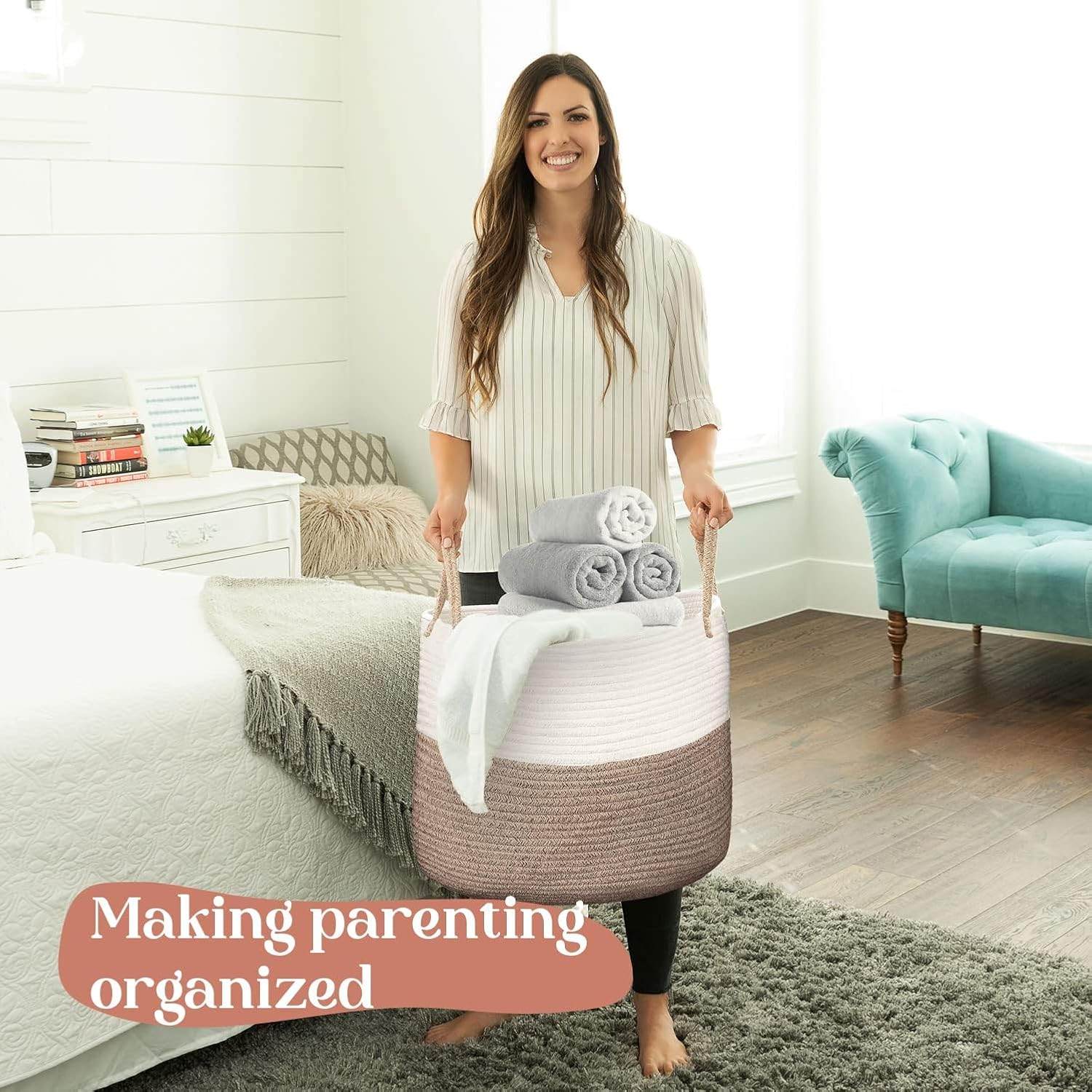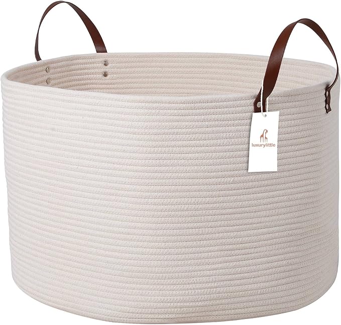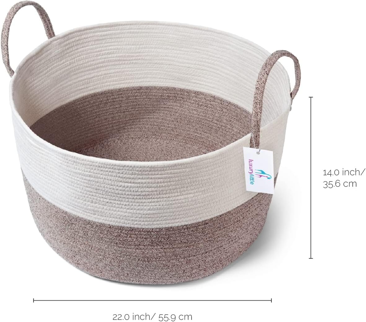 Organize in style with the **Luxury Little XXXL Nursery Storage Basket**! Made from **100% cotton rope**, this **22 x 22 x 14-inch** basket offers **durability, soft texture, and sturdy handles**. Perfect for toys, blankets, and laundry in any space.
