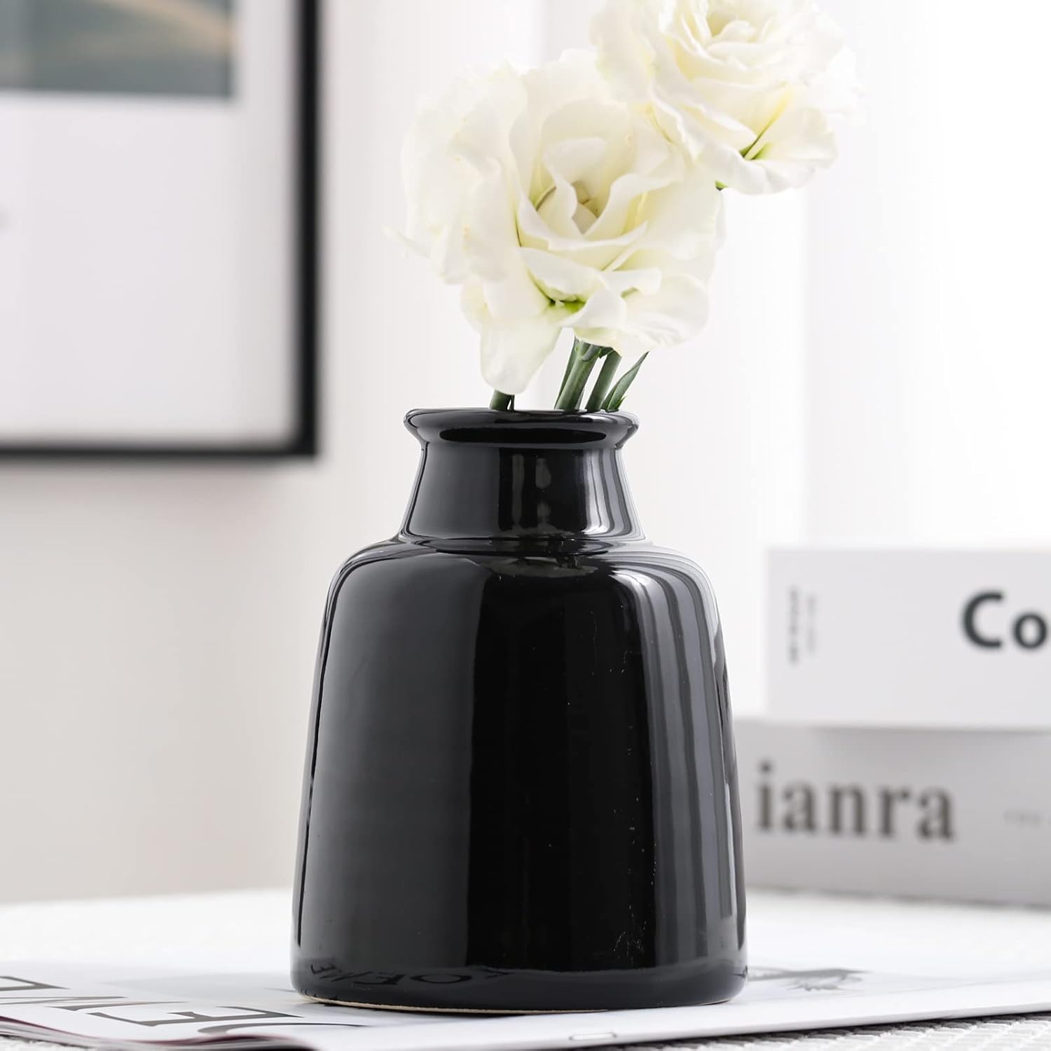 Matte Black Set of 3 Small Ceramic Bottle Vases